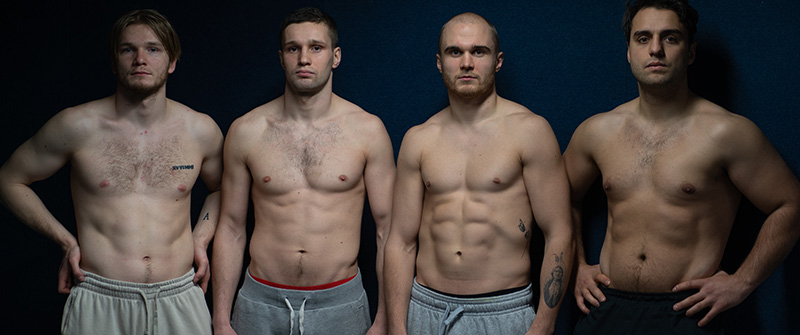 Kuvassa Elite Boxingin nyrkkeilijät Anton Emblulaev (vas.), Ilari Kujala, Topias Lepo ja Keni Aliu. Kuvaaja Bogdan Malyagin.