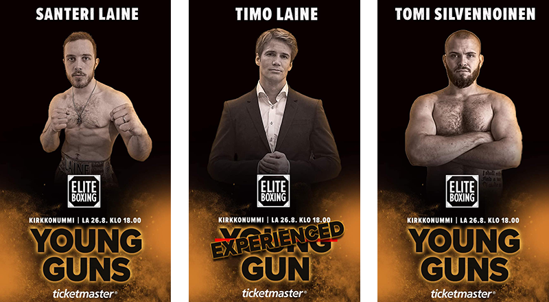 Elite Boxingin riveissä huipulle nousua lähtevät tavoittelemaan Keni Aliu, 23, Ilari Kujala, 27, Anton Embulaev, 21, ja Topias Lepo, 28. Heistä kolmea ensin mainittua valmentaa entinen Euroopan mestari ”Idi” Amin Asikainen. Lepon valmentaja on Miika Forsström.